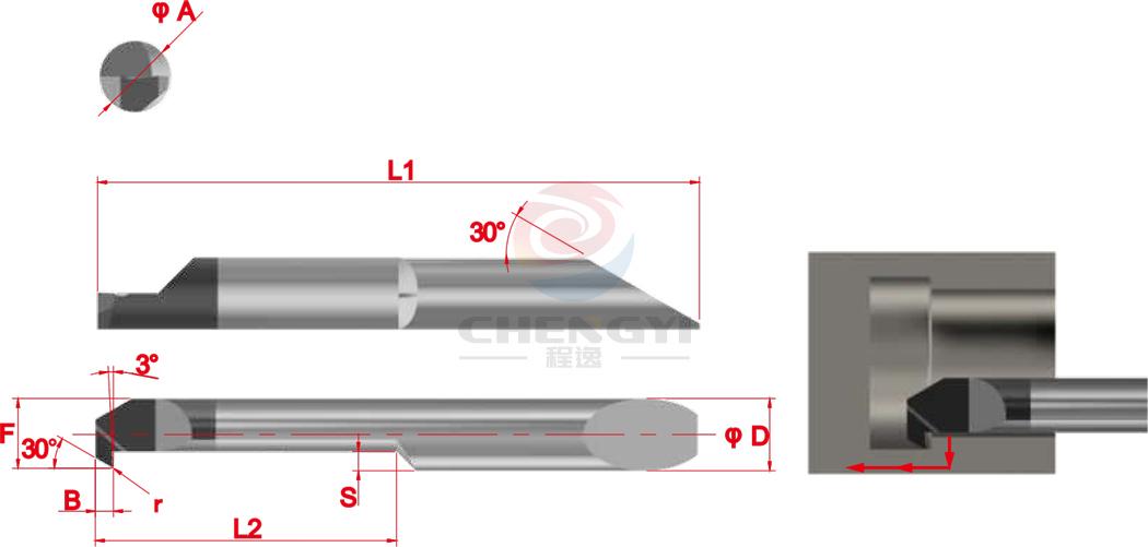 Code Product model Min dia (mm) ØA ØD r L1 L2 F S B