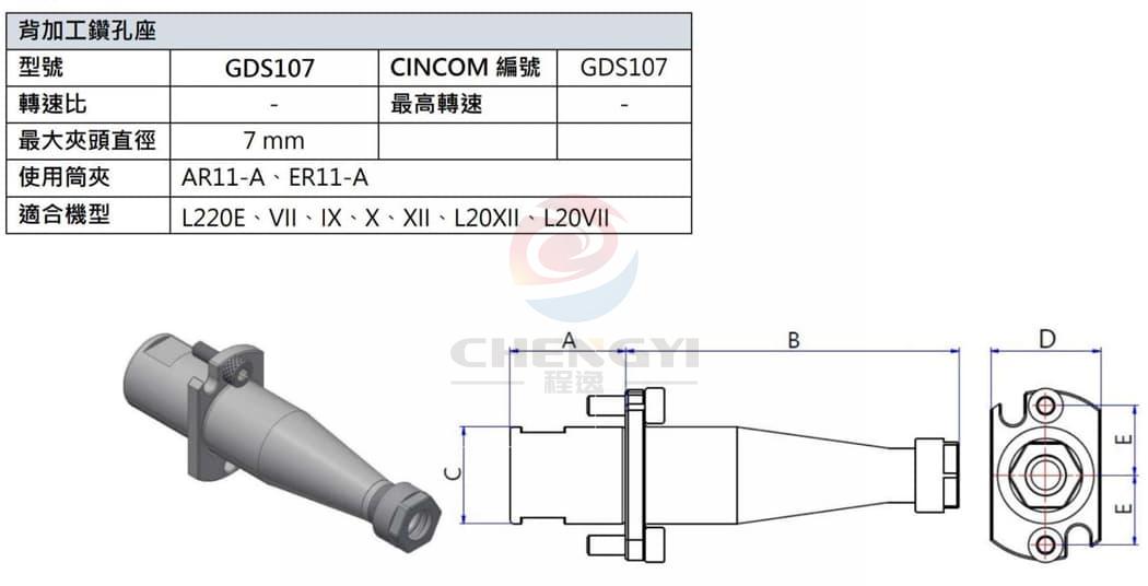 Model GDS107 CITIZEN Number GDS107 Max collet diameter 7mm Using a Collet AR11-A, ER11-A Applicable models L220E, VII, IX, X, XII, L20XII, L20VII