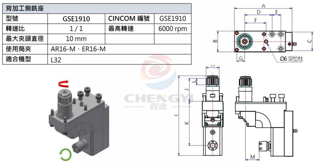 Model GSE1910 CITIZEN Number GSE1910 Ratio 1/ 1 Maximum rpm 6000rpm Max collet diameter 10mm Using a Collet AR16-M, ER16-M Applicable models L32