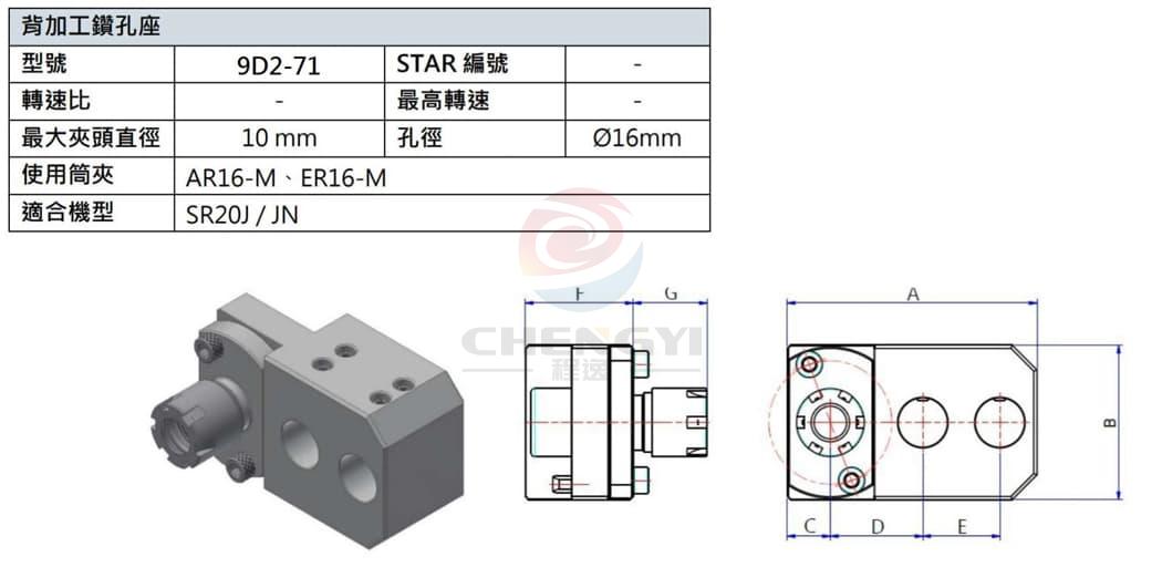 Model 9D2-71 STAR Number - Max collet diameter 10mm Inner hole size Ø16mm Using a Collet AR16-M, ER16-M Applicable models SR20J/ JN