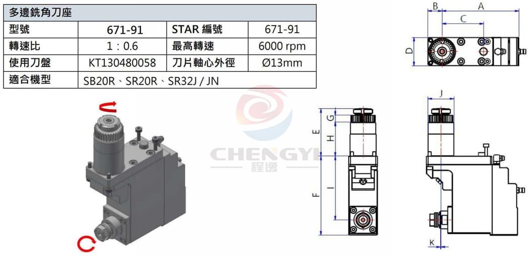 Model 671-91 STAR Number 671-91 Ratio 1:0.6 Maximum rpm 6000rpm Using a cutter head KT130480058 Blade shaft outer diameter Ø13mm Applicable models SB20R, SR20R, SR32J/ JN