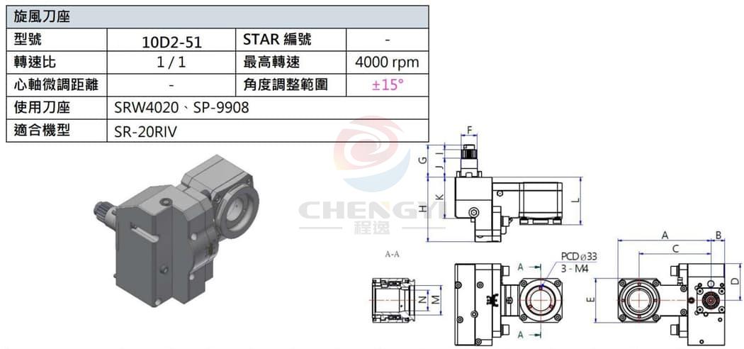 Model 10D2-51 STAR Number - Ratio 1/ 1 Maximum rpm 4000rpm Angle adjustment range ±15° Using a cutter head SRW4020, SP-9908 Applicable models SR-20RIV